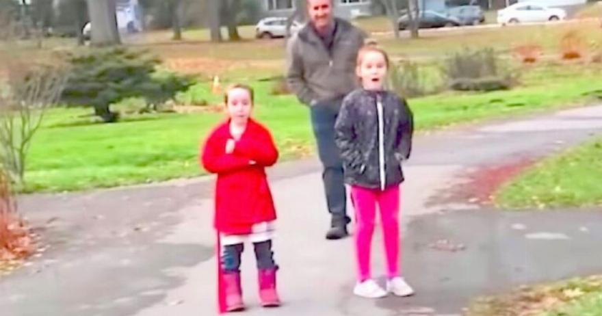 Σε αυτό το βίντεο, βλέπουμε τη μητέρα των κοριτσιών να τα εκπλήσσει στους δρόμους με τη Rosie στην αγκαλιά της. Είναι ένα άγριο μείγμα συναισθημάτων καθώς τα κορίτσια δεν μπορούν να πιστέψουν αυτό που βλέπουν και σιγά σιγά συνειδητοποιούν τη γλυκιά χειρονομία των γονιών τους!
