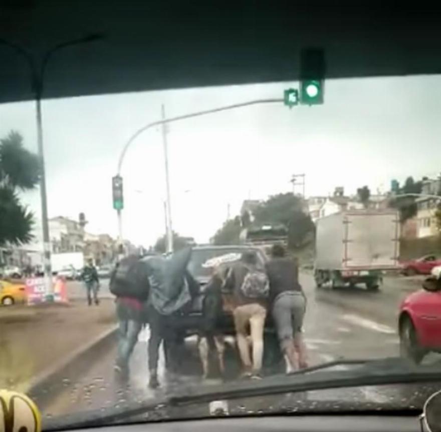 Οι οδηγοί έμειναν έκπληκτοι όταν τον είδαν να προσπαθεί εξίσου βοηθήσει να βγει από τη δύσκολη θέση.
