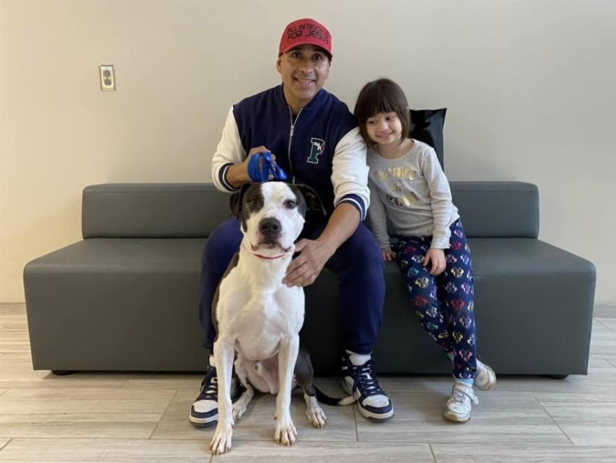 Το προσωπικό του καταφυγίου σύστησε τον Moncayo και τη Sabrina στον Jihoo, ένα 6χρονο πίτμπουλ 65 κιλών.