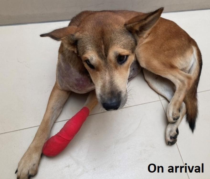Ο Arandy απεικονίζεται μετά τον ακρωτηριασμό του ποδιού του στο καταφύγιο. Ο Arandy έχει περάσει 1.000 ημέρες στο καταφύγιο από τότε που μεταφέρθηκε στο Soi Dog τον Οκτώβριο του 2020.