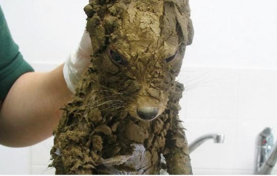 Οι διασώστες ήξεραν πως έπρεπε να δράσουν γρήγορα αν ήθελαν να σώσουν τη ζωή του μη αναγνωρίσιμου πλάσματος που ήταν καλυμμένο με λάσπη.Το προσωπικό του νοσοκομείου άγριων ζώων του Νότιου Έσσεξ το έπλυνε. Ανακάλυψαν πως είναι μια όμορφη μικρή κόκκινη αλεπούΟνόμασαν Muddsey τον νέο τους ασθενή και σιγουρεύτηκαν πως είναι έτοιμος να επιστρέψει στην άγρια φύση.