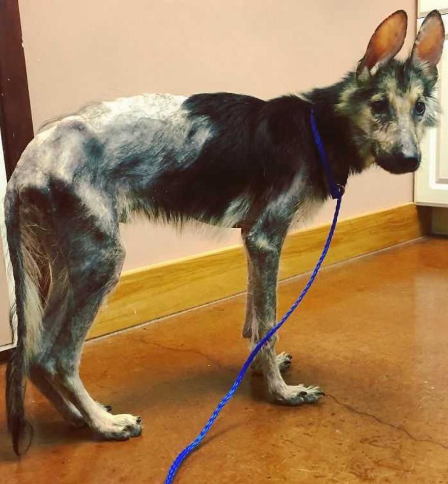 Μετά από εξετάσεις το σκυλί είχε έγκαυμα από τον ήλιο αφυδατομένο και αρκετά επισιτισμένο.