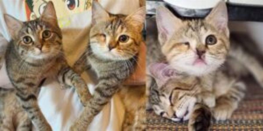 Ήταν μόνο δέρμα και κόκαλα και πολύ άρρωστα όταν οι διασώστες των ζώων τα μάζεψαν και τα έσπευσαν να πάρουν βοήθεια. Ένα γατάκι γεννήθηκε με μια συγγενή παραμόρφωση που επηρεάζει τη δεξιά πλευρά του προσώπου του.