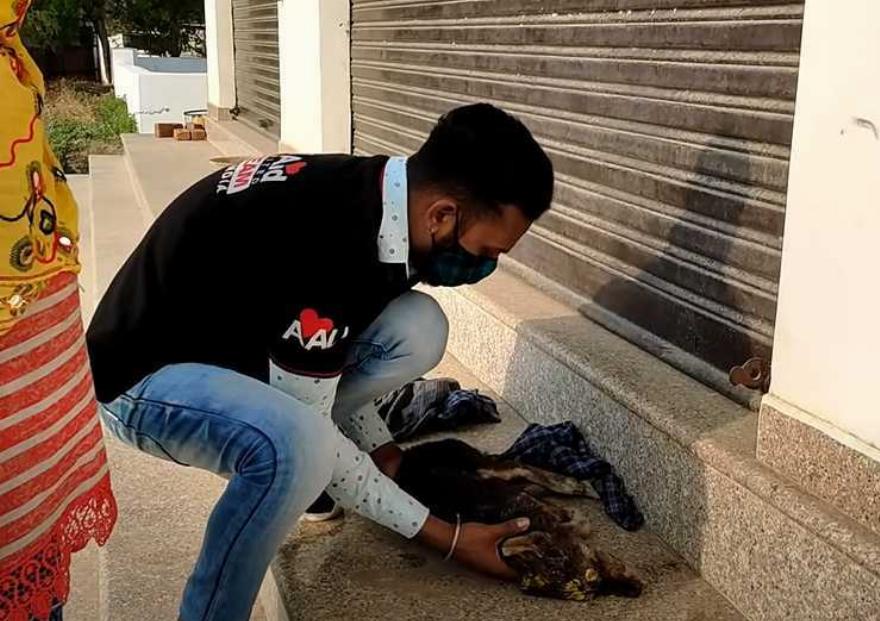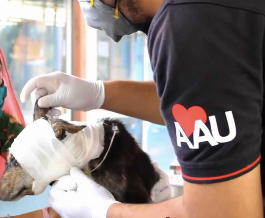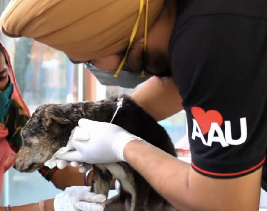 Η Animal Aid Unlimited έλαβε κλήση για ένα κουταβι το οποίο ήταν αναίσθητο το οποίο λιποθύμησε μετά από τραμπουκισμο από άλλο ζώο.