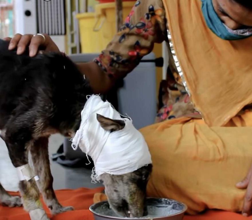 Το σκυλί ήταν πολύ εξαντλημένο και με δυσκολία προσπάθησε να ξυπνήσει απότομα κομα του όμως όταν ξύπνησε κούνησε την ουρά του.Οι γιατροί ελπίζουν ότι θα θεραπευτεί πλήρως.