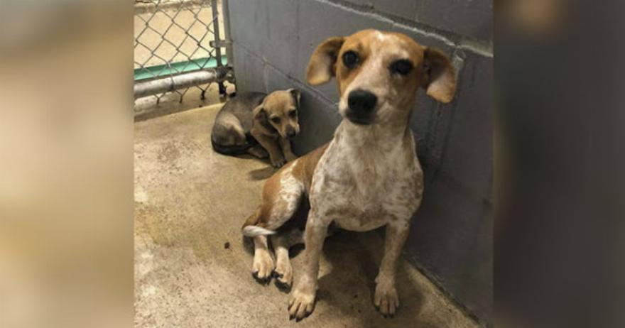 Σε ένα γεμάτο καταφύγιο στο Νότιο Τέξας, στις Ηνωμένες Πολιτείες, ένα σκυλί προσπαθούσε απεγνωσμένα να κρύψει το μωρό της. Και τα δύο σκυλιά έτρεμαν από φόβο μπροστά από τον εθελοντή που τα κατέγραφε με το κινητό του τηλέφωνο, ενώ το μωρό προσπαθούσε να κρύψει το πρόσωπο του πίσω από τη μητέρα του και το τείχος του ρείθρου του.