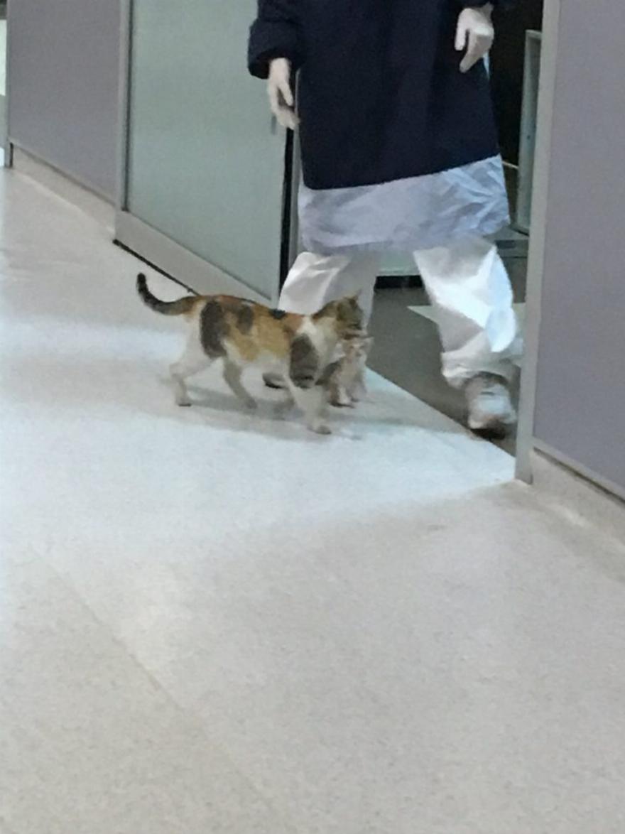 «Σήμερα βρισκόμασταν στα επείγοντα περιστατικά του νοσοκομείου όταν μια γάτα μπήκε μέσα στην αίθουσα κρατώντας με το στόμα το μικρό της»
