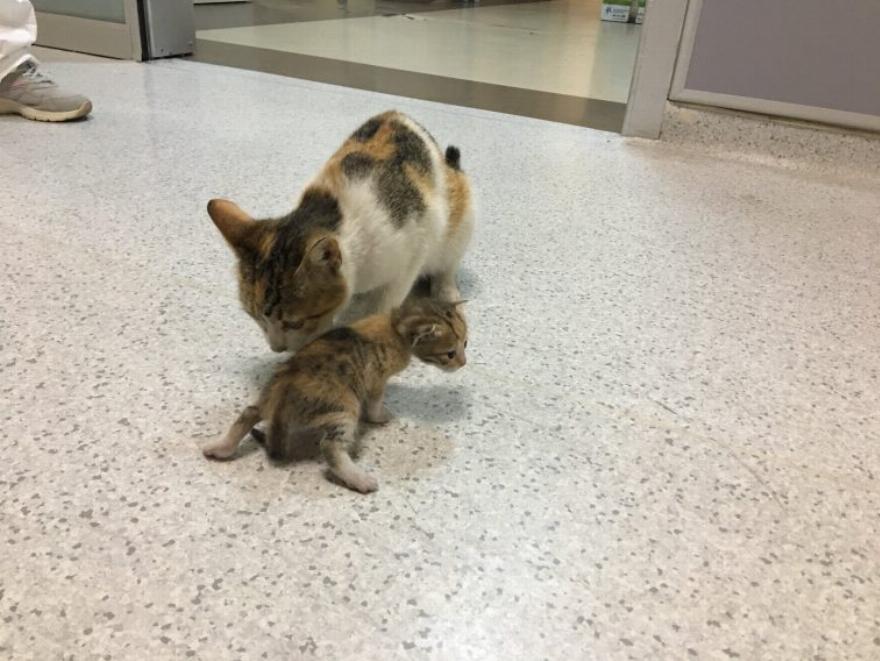 Χάρη στη γρήγορη ανταπόκριση του προσωπικού η γατούλα και το μωρό της έλαβαν όλη τη βοήθεια που τους άξιζε.