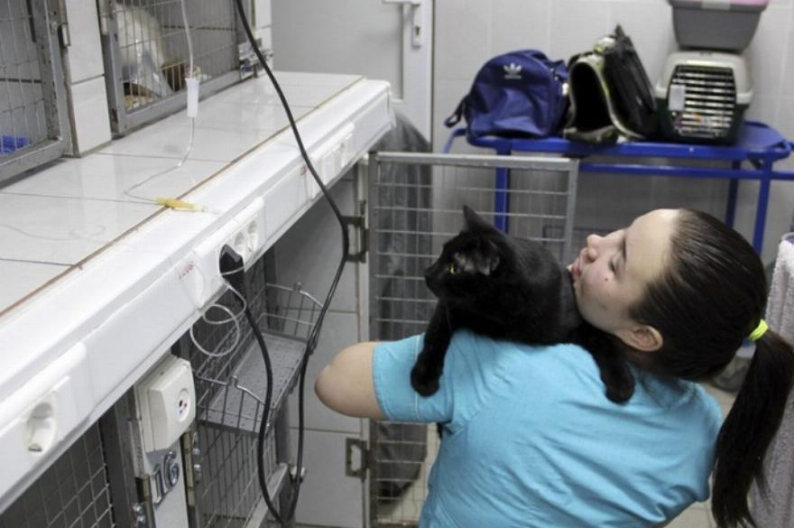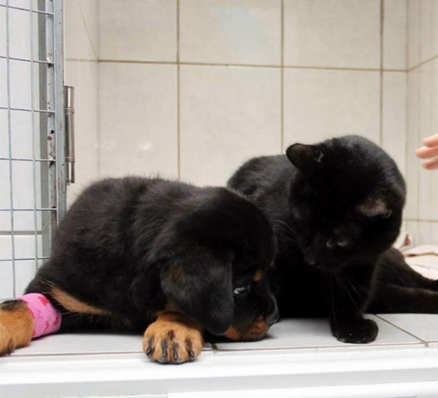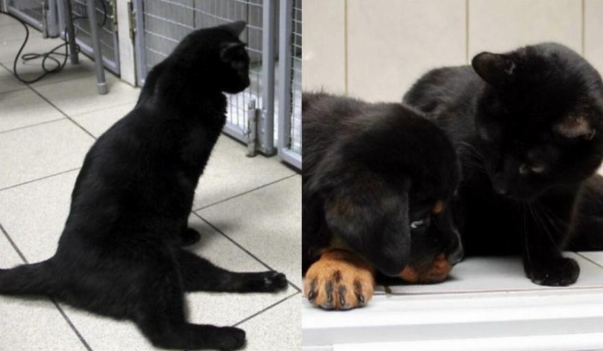 Πρόκειται για τον γάτο νοσοκόμο που φροντίζει τα άρρωστα σκυλάκια της ζωοκλινικής, παρόλο που είναι παράλυτος στα πισινά του πόδια, συγκινώντας τους πάντες.