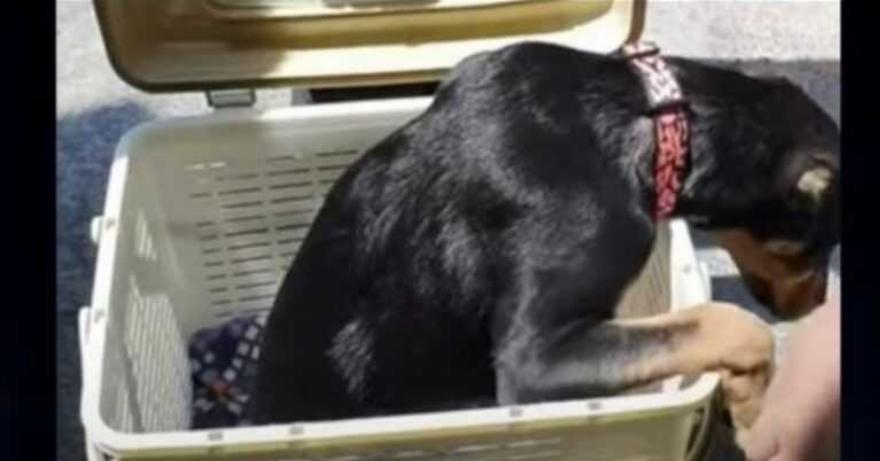 Το σκυλί φοβερά πονεμένο και τραυματισμένο όταν το βρήκαν οι διασώστες το μετέφεραν κατευθείαν στον γιατρό ώστε να επουλώσουν οι πληγές και ήλπιζαν ότι θα καταφέρει.