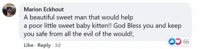 Επίσης αποκάλυψε την ευχάριστη είδηση ότι βοήθησε να βρεθεί στο γατάκι ένα κατάλληλο σπίτι με τη βοήθεια της τοπικής του κοινότητας.