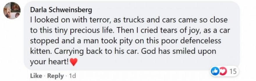 Ένα άτομο βγαίνει από το αυτοκίνητο και κάνει αυτό που κανένας άλλος δεν είχε την καρδιά να κάνει- αφήνει το αυτοκίνητό του και περπατάει για να σώσει το γατάκι.