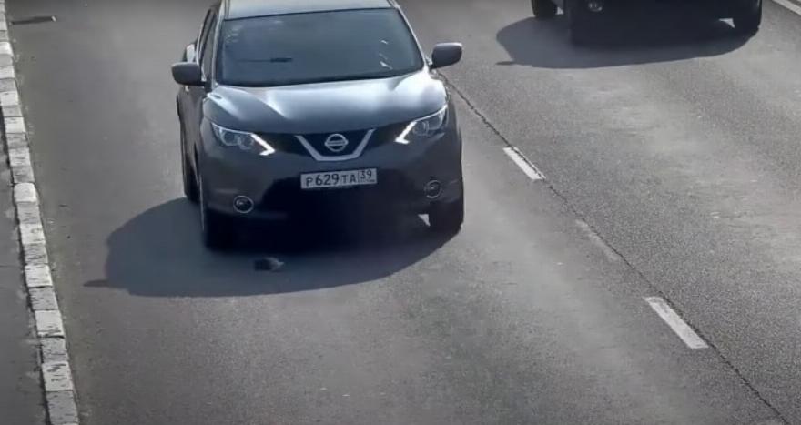 Σε πολλαπλές στιγμές του βίντεο, αυτοκίνητα και φορτηγά περνούν πάνω από το γατάκι – το οποίο ευτυχώς μένει σώο και αβλαβές καταλήγοντας ανάμεσα στις ρόδες και όχι κάτω από αυτές.