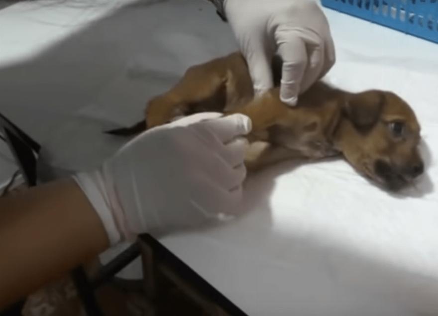 Ευτυχώς, ένας τοπικός κτηνίατρος ήρθε αμέσως, καθώς τον κάλεσε ένας ευγενικός άνθρωπος που είδε το σκυλί. Ο κτηνίατρος είδε ότι η κατάστασή της ήταν τραγική, καθώς δεν μπορούσε να σταθεί μόνη της, δεν μπορούσε καν να κρατήσει το βάρος της στα πόδια της. Οι καρδιές των κτηνιάτρων ράγισαν, αλλά είχαν ελπίδα.