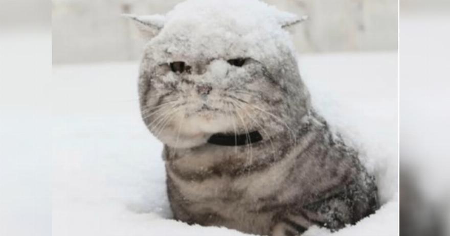 Πρόκειται για μια αδέσποτη γάτα που περίμενε για βοήθεια μέσα στο κρύο με το χιόνι να την έχει σκεπάσει και για καλή της τύχη, την εντόπισε μια γυναίκα παίρνοντας την τελικά στο σπίτι της.