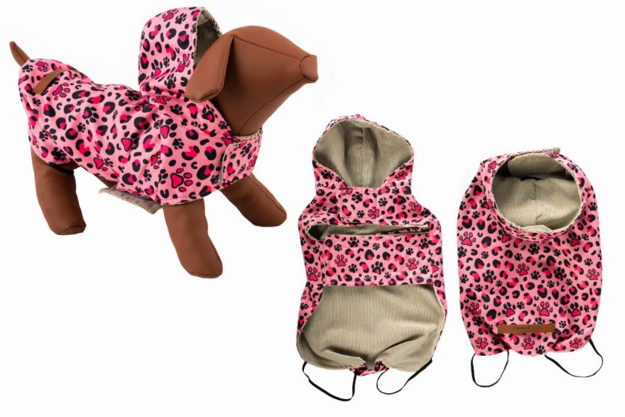 Αδιάβροχο Μπουφάν Σκύλου Woofmoda Με Κουκούλα σε χρώμα Ροζ με σχέδια
