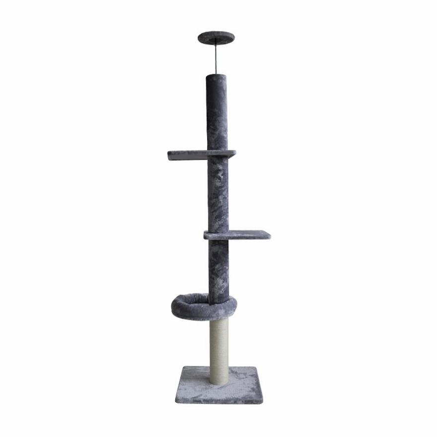 Έχει μια κεντρική κολόνα που περιμετρικά είναι τυλιγμένο με σχοινί sisal που δίνει τη δυνατότητα να εκτονωθούν και να ξύσουν τα νυχάκια τους. Επίσης, είναι πιο βοηθητικό για το σκαρφάλωμα. Το πάνω κομμάτι του ονυχοδρομίου αυξομοιώνεται για καλύτερη επαφή και προσαρμόζεται σε όλες τις οροφές έτσι ώστε να έχει περισσοτέρη σταθερότητα. Το μικρό σας γατί θα ξετρελαθεί και δε θα σταματήσει ποτέ να σκαρφαλώνει. Διαστάσεις: 60*60*248cm.