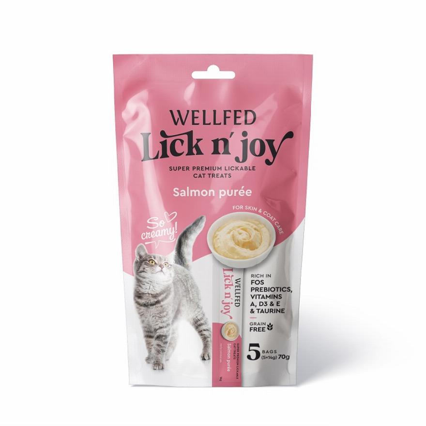 Κρεμώδης Λιχουδιά Γάτας Wellfed Lick N’ Joy με γεύση Σολωμό (5*14GR) 70GR
