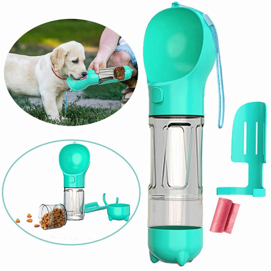 Αυτό το φορητό, εύκολο στην χρήση μπουκάλι για σνακ και για νερό είναι όλα όσα χρειάζεται ο χνουδωτό σας φίλο, όταν βγαίνετε έξω. Το 4 σε 1 φορητό δοχείο τροφοδοσίας με κομψό και μοντέρνο σχέδιο διαθέτει χώρο για νερό, φαγητό και σακουλάκι και φτυαράκι για τα περιττώματα. Σε αντίθεση με τα συνηθισμένα μπουκάλια νερού, αυτό δοχείο για κατοικίδια αποτελείται από τρία μέρη, τα οποία μπορούν να χωρέσουν περίπου 500 ml νερό, 75 γραμμάρια τροφής και μια θήκη για ρολό σκουπιδιών. Το δοχείο τροφοδοσίας είναι κατασκευασμένο από υλικό κατάλληλο για τρόφιμα. Τέρμα το πρόβλημα με το νερό και τη πείνα όταν βγάζετε βόλτα τον σκύλο σου. Μπορείτε να το κρατάτε στο χέρι σας ή να το βάλετε στην τσάντα σας για ευκολία.