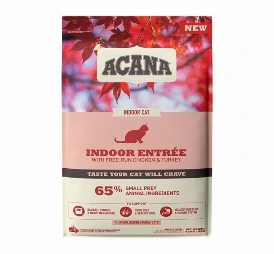 Πλήρης τροφή Acana για ενήλικες στειρωμένες γάτες με κοτόπουλο ελευθέρας βοσκής, γαλοπούλα, κουνέλι και ολόκληρη ρέγγα. Συγκεκριμένα, αποτελείται από 65% ζωικά συστατικά από μικρά θηράματα, που προσφέρουν γευστική απόλαυση στη γάτα σας και της ξυπνούν το ένστικτο του κυνηγού που κρύβει μέσα της. Συμβάλλει στην υγιή ανάπτυξη του μυϊκού συστήματος και των οστών, λόγω της υψηλής περιεκτικότητας ακατέργαστης πρωτεΐνης, ενώ τα λιπαρά οξέα EPA-DHA και η ταυρίνη διατηρούν την καλή υγεία του εγκεφάλου και των ματιών, που είναι το κλειδί για μια μακριά και υγιή ζωή.Η τροφή αυτή είναι ένας ανεκτίμητος σύμμαχος για την καλή υγεία της γάτας σας, καθώς και για ένα υγιές τρίχωμα και δέρμα λόγω των Ω-3 και Ω-6 λιπαρών που περιέχει. Η Acana Indoor Entrée Adult Sterilised συνιστά επομένως την ολοκληρωμένη λύση για μια ισορροπημένη και υγιή ζωή της γατούλας σας! Βασικά Χαρακτηριστικά