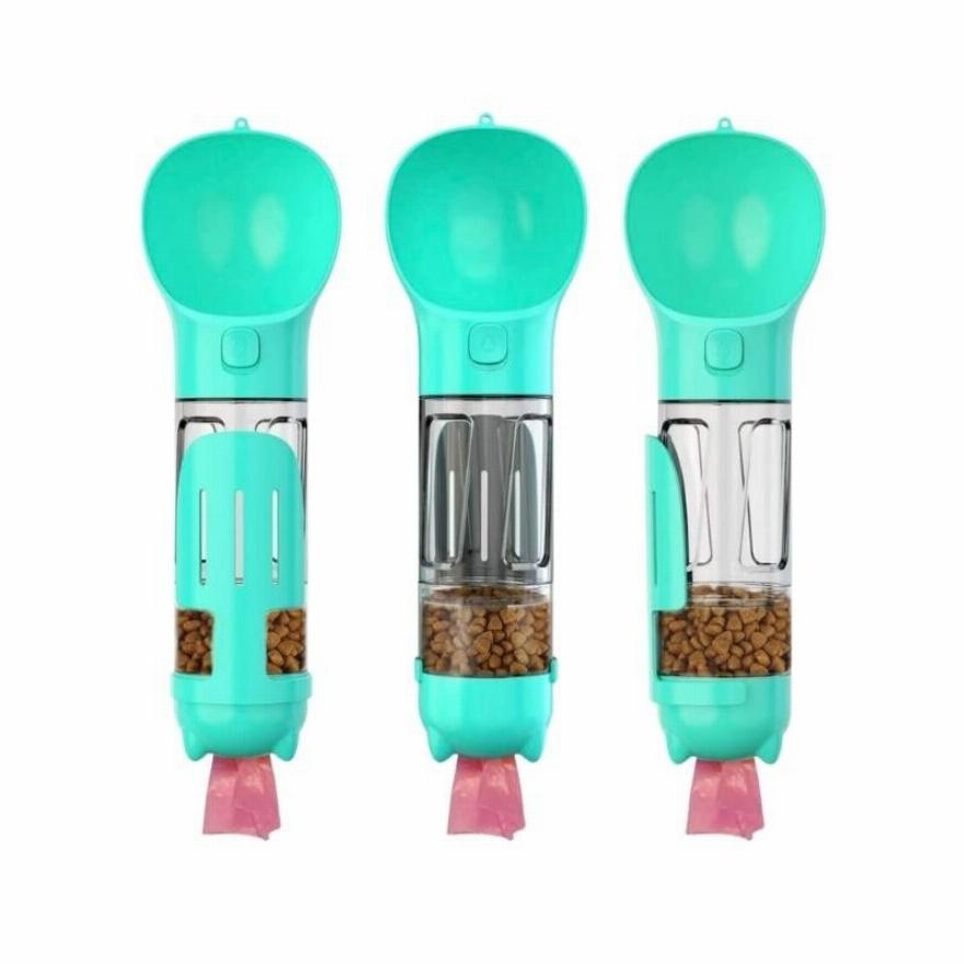 Τα μπολ με φαγητό και νερό του κατοικίδιου ζώου σας από το σπίτι μπορεί να καταλαμβάνουν χώρο στο κιτ έκτακτης ανάγκης, οπότε είναι καλύτερο να έχετε πτυσσόμενα μπολ για να εξοικονομήσετε χώρο. Αυτό το φορητό, εύκολο στην χρήση μπουκάλι για σνακ και για νερό είναι όλα όσα χρειάζεται ο χνουδωτό σας φίλο, όταν βγαίνετε έξω. Το 4 σε 1 φορητό δοχείο τροφοδοσίας με κομψό και μοντέρνο σχέδιο διαθέτει χώρο για νερό, φαγητό και σακουλάκι και φτυαράκι για τα περιττώματα.