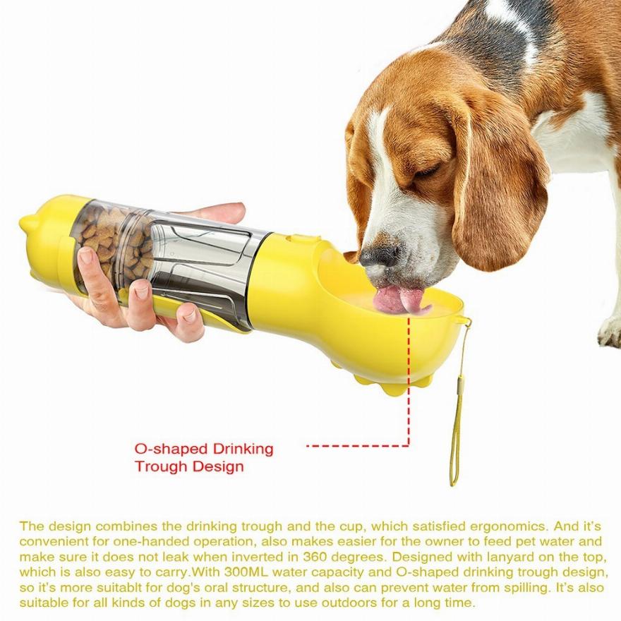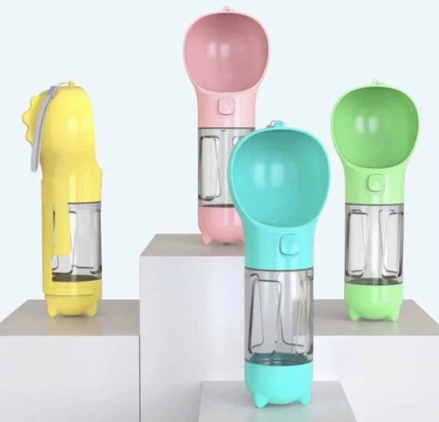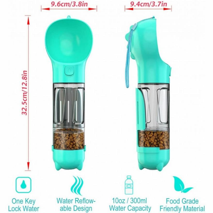 Αυτό το 4 σε 1 μπουκάλι νερού περιέχει δοχείο τροφής, έτσι ώστε το κατοικίδιο σας να μπορεί να έχει ένα σνακ όταν είστε σε μια βόλτα! Μπορεί, επίσης, να χρησιμοποιηθεί και σαν μπωλ τροφής