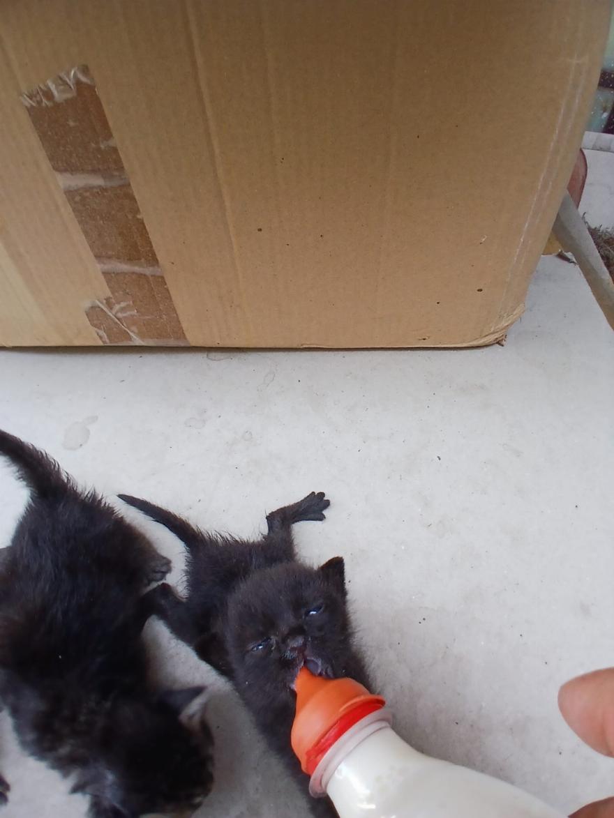 Δυστυχώς, η μανούλα τους είχε ένα ατύχημα με ένα αυτοκίνητο. Τα γατάκια την αναζήτησαν για τρεις ολόκληρες μέρες, ξεσηκώνοντας τον κόσμο με τις φωνές τους. Ευτυχώς, κάποιος καλόκαρδος άνθρωπος τους άκουσε και πρόσφερε γάλα με μπιμπερό και άλλα απαραίτητα για να κοντρολάρουν τη λιγούρα τους.