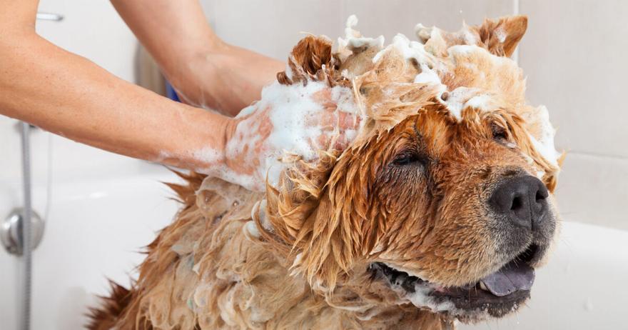 Η πρώτη φορά θα μαλακώσει την βρωμιά ενώ η δεύτερη θα ξεβγάλει όλες τις ακαθαρσίες και τα λάδια από το τρίχωμα του σκύλου. Ένα σφουγγάρι από λούφα μπορεί να βοηθήσει να απλωθεί καλύτερα το σαμπουάν. Μην ξεχάστε τα πόδια τον σκυλιών, τις μασχάλες και την κοιλιά τους. Το μπάνιο μπορεί να γίνει μια ευχάριστη και χαλαρωτική διαδικασία – κάντε μασάζ με τα χέρια σας την ώρα που τον πλένετε. Αυτή η διαδικασία απαιτεί χρήση ζεστού νερού.