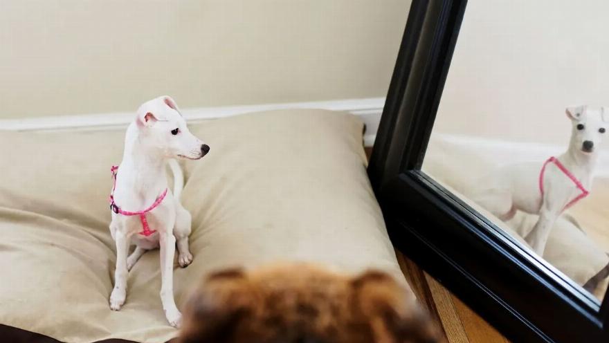 Σκύλοι και καθρέφτης: Οι περισσότεροι σκύλοι δεν περνούν το τεστ. Δηλαδή, δεν φαίνεται να αναγνωρίζουν το είδωλό τους και συχνά αντιδρούν σαν να βλέπουν έναν άλλον σκύλο.