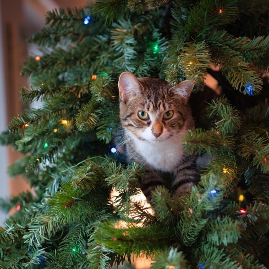 Υπάρχει επίσης ο κίνδυνος το χριστουγεννιάτικο δέντρο να αναποδογυρίσει τελείως αν η γάτα το χρησιμοποιήσει ως δέντρο αναρρίχησης ή αν τραβήξει τα φωτάκια.