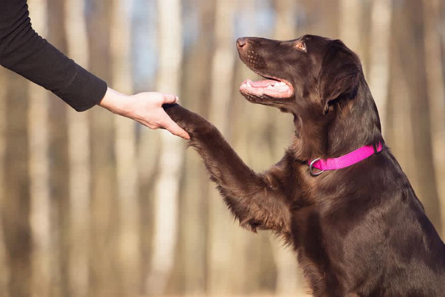 Η Winnie, ο σκύλος της Samantha Balaban, δίνει το χέρι στον άνθρωπό της. Η Balaban λέει ότι τα σκυλιά μπορούν να επωφεληθούν από τη συνεργασία με έναν εκπαιδευτή, είτε πρόκειται για τη βελτίωση των δεξιοτήτων, των τρόπων συμπεριφοράς ή της συμπεριφοράς τους.