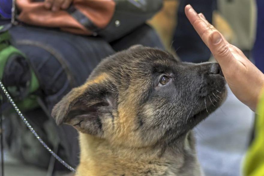 Κρατήστε την επίπεδη παλάμη σας κοντά στο πρόσωπο του σκύλου σας και περιμένετε να εμπλακεί ο σκύλος σας. Όταν ο σκύλος σας πάει να μυρίσει, επισημάνετε λεκτικά λέγοντας “ναι” ή κάντε κλικ (αν εκπαιδεύετε με κλικ) καθώς η μύτη του αγγίζει το χέρι σας. Αντιμετωπίστε αμέσως τον σκύλο σας.
