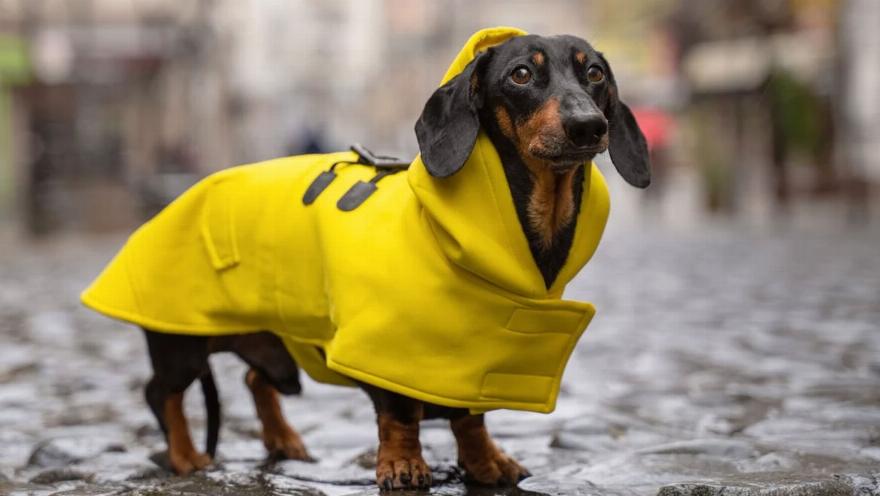 Αν ο σκύλος σας έχει συνηθίσει να φοράει ρούχα, βάλτε του ένα αδιάβροχο. Επιλέξτε ένα με αντανακλαστικά πάνελ, ώστε να ξεχωρίζει στο σκοτάδι. Τα ανακλαστικά κολάρα και οι οδηγοί είναι επίσης χρήσιμα τις σκοτεινές, βροχερές νύχτες. Όταν βάζετε το αδιάβροχο, να θυμάστε ότι πρέπει να εξασκηθείτε στον χειρισμό (σύνδεσμος σε σχετικό βίντεο) για να το κάνετε διασκεδαστικό και όχι κυνηγητό!