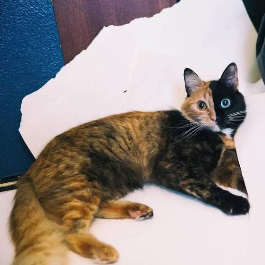 Αυτό το σπάνιο αιλουροειδές, γνωστό ως γάτα Quimera, έχει ένα εξωτικό και μοναδικό χαρακτηριστικό – κάθε μισό του προσώπου της έχει εντελώς διαφορετικό χρώμα, συμπεριλαμβανομένων των ματιών της.