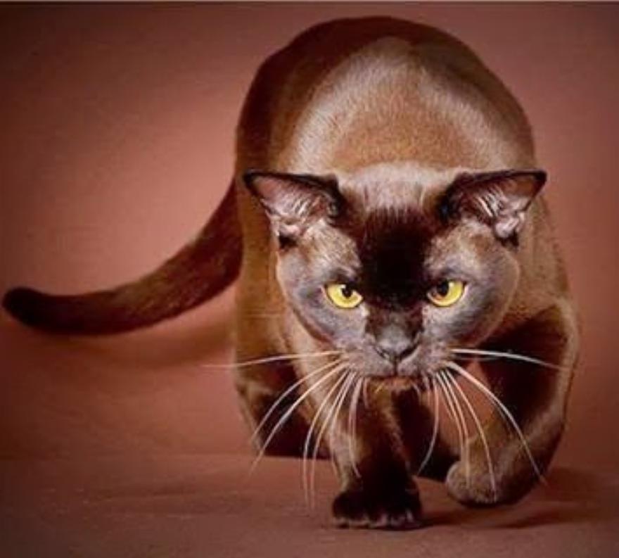 Πλούσια και ομοιόμορφη απόχρωση του καφέ σε όλο το μήκος- το χρώμα τείνει προς το κόκκινο-καφέ παρά προς το μαύρο-καφέ. Τα πέλματα των δακτύλων έχουν ρόδινο τόνο. Μουστάκια καφέ, που συμπληρώνουν το χρώμα του τριχώματος.