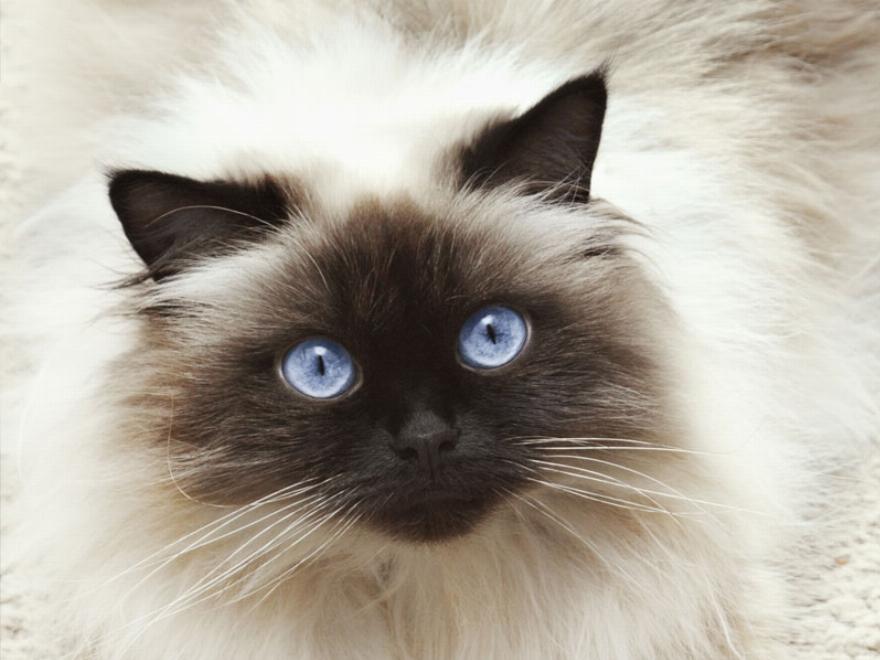 Η γάτα Ιμαλαΐων είναι αποτέλεσμα διασταύρωσης με τη γάτα Σιάμ, έχει μπλε μάτια και λευκό-κρεμ παλτό με μαύρα, μπλε, λιλά, σοκολατί και μοτίβα τίγρης.