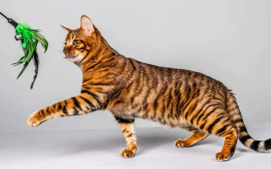 Με μεγαλοπρεπή εμφάνιση που ταιριάζει σε τίγρη, η Toyger είναι μια μεσαίου μεγέθους, μυώδης γάτα με μακρύ σώμα, ψηλούς ώμους και πρόσωπο σε σχήμα ανεστραμμένης καρδιάς. Ο ισχυρός σωματότυπος της προσφέρειγια το βήμα μιας άγριας γάτας, που απαιτεί την προσοχή σας. Με ένα μοτίβο τριχώματος που είναι μοναδικό, η Toyger έχει κυκλικά σημάδια στο πρόσωπο και σκούρες κάθετες λωρίδες πάνω στο γυαλιστερό, βελούδινο, ζωηρό πορτοκαλί τρίχωμά της.