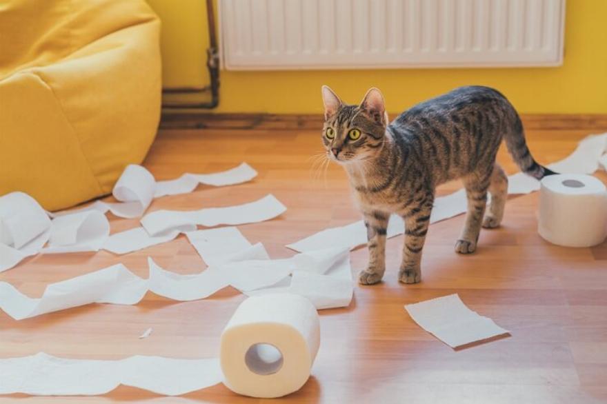 Αν οι γάτες βαριούνται και απογοητεύονται, μπορεί να γίνουν πολύ άγριες όταν παίζουν- η επιθετικότητα και οι καταστροφικές συμπεριφορές μπορεί να είναι η συνέπεια. Αν η γάτα σας παίζει συνεχώς με το χαρτί, αλλά ενθουσιάζεται υπερβολικά, αρχίζει να το μασάει και να το σκίζει και γίνεται καταστροφική, σκεφτείτε να προσθέσετε περισσότερο εμπλουτισμό στο σπίτι, όπως ταΐστρες παζλ και παιχνίδια για γάτες.