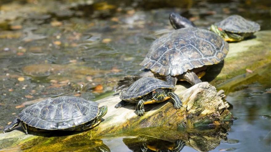 Οι χελώνες με τα κόκκινα σημάδια αλλά και οι χελώνες cooters μπορούν να φτάσουν μέχρι και τα 35 εκατοστά ενώ οι άλλες δύο έχουν σχεδόν το μισό τους μέγεθος.