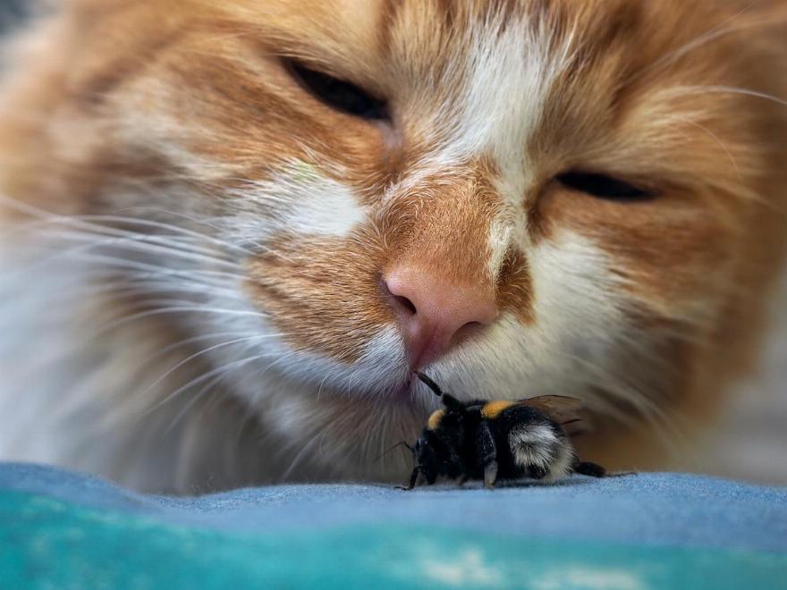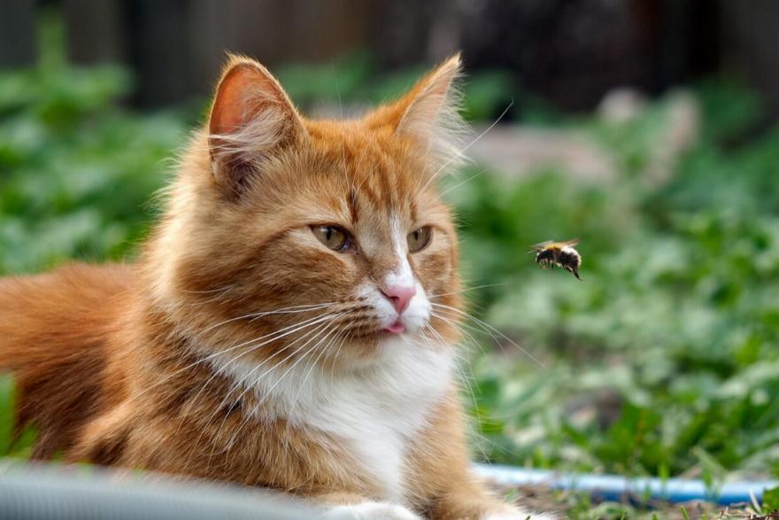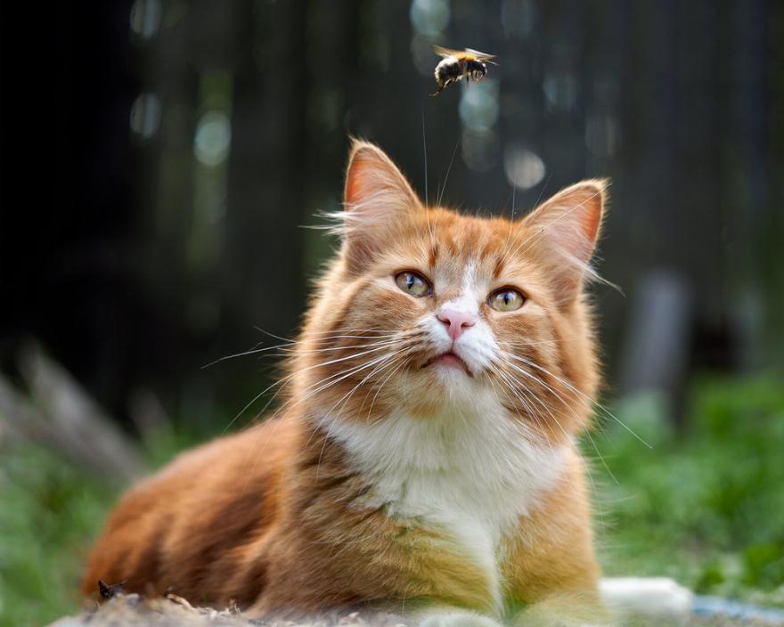 Οι μέλισσες και οι σφήκες τσιμπάνε συχνά τις γάτες. Μπορεί να μοιάζουν μεταξύ τους, αλλά τα τσιμπήματά τους είναι πολύ διαφορετικά. Οι σφήκες έχουν ευθεία κεντριά που δεν αποσπώνται όταν τσιμπάνε. Αυτό σημαίνει ότι μια σφήκα μπορεί να τσιμπήσει ξανά και ξανά.