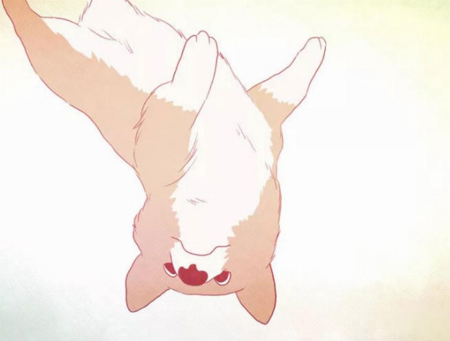 Ο σκύλος κυλιέται και δείχνει την κοιλιά του