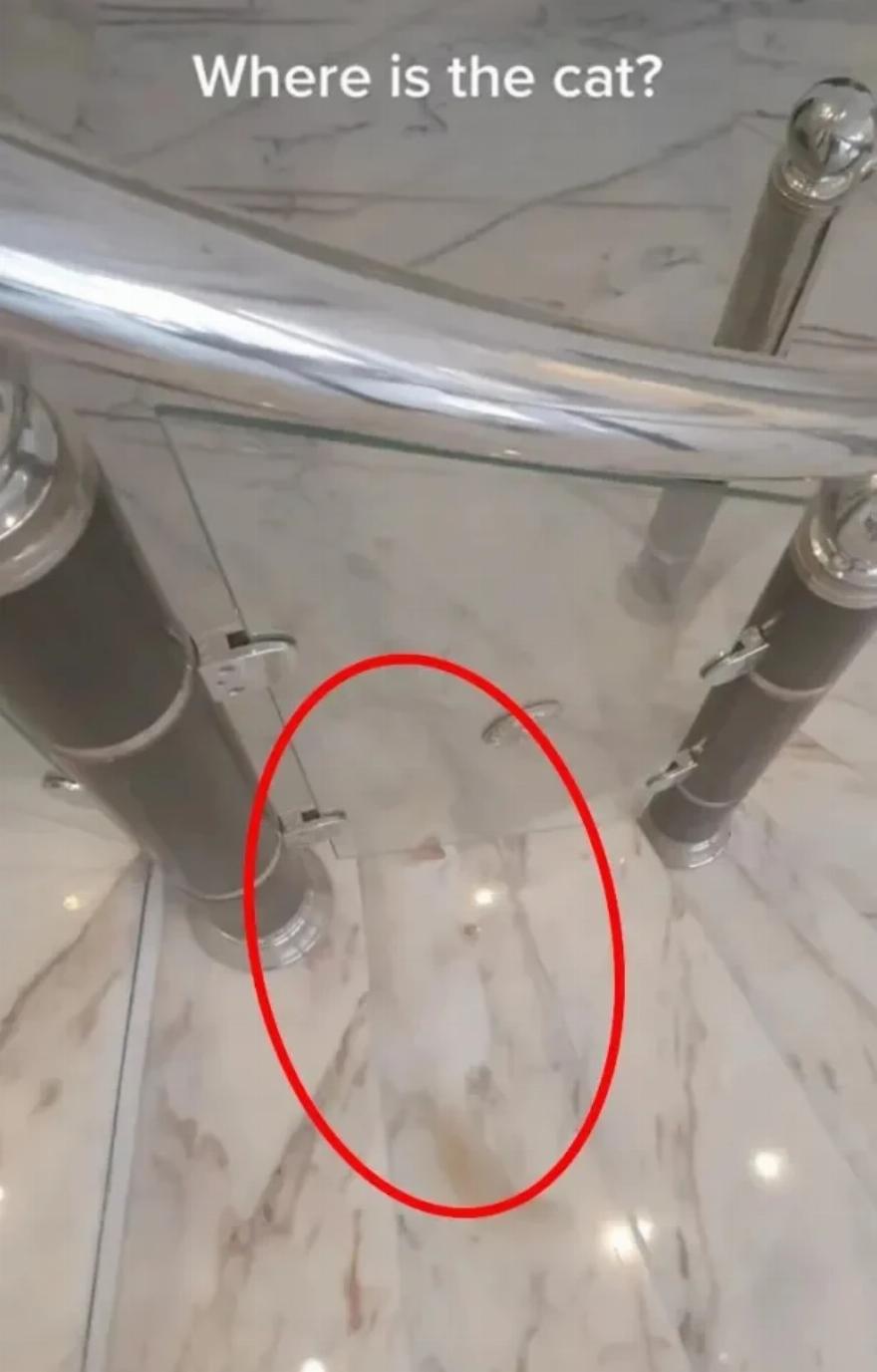 Η συγκεκριμένη οπτική ψευδαίσθηση έχει αρκετά δύσκολη. Στην παρακάτω εικόνα από μία σκάλα υπάρχει μία γάτα. «Πού είναι η γάτα;» ρωτάει η TikToker Hidden Cats.