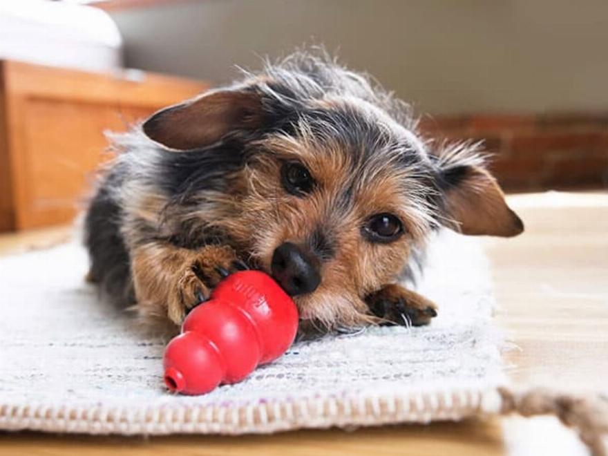 Θα μπορούσατε, για παράδειγμα, να γεμίσετε το Kongo με φυστικοβούτυρο ή παιδική τροφή και να το δώσετε στο σκύλο σας αφού έχει μείνει για λίγο στην κατάψυξη.