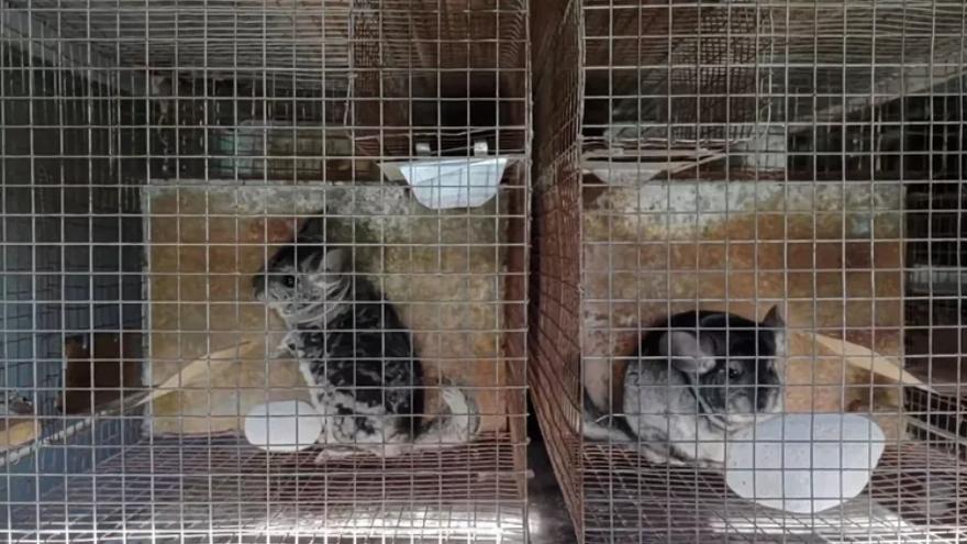 Κατέγραψαν ενήλικα τσιντσιλά να ροκανίζουν απεγνωσμένα τα κάγκελα των κλουβιών και μωρά να παλεύουν να κινηθούν στα συρμάτινα πατώματα, με τα πόδια τους να γλιστρούν μέσα από τις σχάρες των κλουβιών.