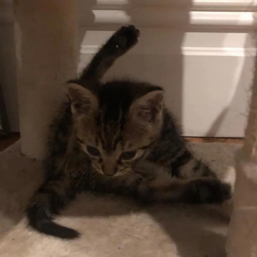Εκείνη την εποχή, ένα μικρό ορφανό γατάκι σώθηκε από τη ζωή στο δρόμο και χρειαζόταν ένα ανάδοχο σπίτι. Η Fuzzy Butt Rescue την πήρε και γρήγορα παρατήρησε πόσο εξωστρεφής και παιχνιδιάρα ήταν.