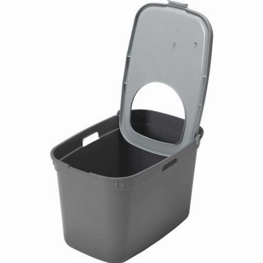 Επιπλέον, το κλειστό σύστημα αποτρέπει τις διαρροές και κρατά την άμμο εντός της λεκάνης, εξασφαλίζοντας ότι η τουαλέτα παραμένει καθαρή και χωρίς οσμές. Η λεκάνη είναι αρκετά βαθιά ώστε να φιλοξενεί επαρκή ποσότητα άμμου για να καλύπτει τις ανάγκες της γάτας, ενώ ταυτόχρονα διατηρεί την άμμο στη θέση της, ακόμη και αν η γάτα σκάβει έντονα.