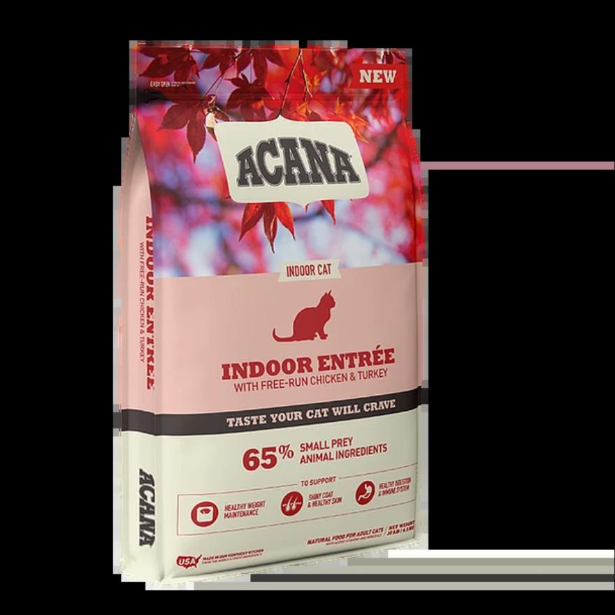 H Acana Indoor Entrée Adult Sterilised είναι μία πλήρης τροφή για ενήλικες στειρωμένες γάτες με κοτόπουλο ελευθέρας βοσκής, γαλοπούλα, κουνέλι και ολόκληρη ρέγγα. Συγκεκριμένα, αποτελείται από 65% ζωικά συστατικά από μικρά θηράματα, που προσφέρουν γευστική απόλαυση στη γάτα σας και της ξυπνούν το ένστικτο του κυνηγού που κρύβει μέσα της. Συμβάλλει στην υγιή ανάπτυξη του μυϊκού συστήματος και των οστών, λόγω της υψηλής περιεκτικότητας ακατέργαστης πρωτεΐνης, ενώ τα λιπαρά οξέα EPA-DHA και η ταυρίνη διατηρούν την καλή υγεία του εγκεφάλου και των ματιών, που είναι το κλειδί για μια μακριά και υγιή ζωή.Η τροφή αυτή είναι ένας ανεκτίμητος σύμμαχος για την καλή υγεία της γάτας σας, καθώς και για ένα υγιές τρίχωμα και δέρμα λόγω των Ω-3 και Ω-6 λιπαρών που περιέχει. Η Acana Indoor Entrée Adult Sterilised συνιστά επομένως την ολοκληρωμένη λύση για μια ισορροπημένη και υγιή ζωή της γατούλας σας!