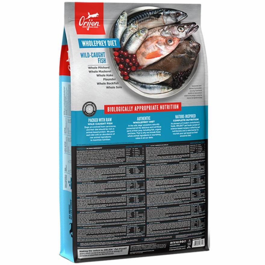 H πλήρης τροφή χωρίς σιτηρά Orijen Six Fish με ψάρι για όλα τα σκυλάκια με αλλεργίες και δυσανεξίες, ανεξαρτήτως ηλικίας και φυλής. Συγκεκριμένα, αποτελείται από 85% πρωτεϊνης ποιοτικών ζωικών συστατικών, με 6 διαφορετικά φρέσκα και ολόκληρα ψάρια αλμυρού νερού, αλιευμένα με βιώσιμο τρόπο, τα οποία είναι υψηλά σε πρωτεΐνη και λιπαρά οξέα, καθώς επίσης περιέχει υγιεινά φρούτα και λαχανικά της εποχής τα οποία είναι πλούσια σε αντιοξειδωτικά συστατικά που ενισχύουν το ουροποιητικό του σύστημα και έχουν αντιφλεγμονώδη δράση και αντικαρκινικές ιδιότητες. Η τροφή αυτή είναι χαμηλή σε υδατάνθρακες και βοηθούν στην υποστήριξη των υγειών επιπέδων σακχάρου στο αίμα, είναι άριστη διατροφή και επιτυγχάνει την διατήρηση του ιδανικού σωματικού βάρους. Η τροφή αυτή περιέχει χόρτα οπού καθαρίζουν το αίμα και ρυθμίζουν την σπλήνα και το συκώτι. Παράλληλα, βοηθά στην ομαλή λειτουργιά του πεπτικού. Ο σκύλος επωφελείται από τις βιταμίνες, τα μέταλλα και τα ιχνοστοιχεία που έχουν τα φυτά. Είναι μια τροφή πλούσια σε θρεπτικά συστατικά με ασυναγώνιστη γεύση που όλα τα σκυλάκια θα λατρέψουν. Είναι τα απαραίτητα και αναγκαία συστατικά που χρειάζεται το σκυλάκι σας για μία γρήγορη και σωστή ανάπτυξη των μυών και των οστών του. Τα 2/3 της τροφής αποτελούνται από φρέσκα ή ωμά συστατικά και μόνο το 1/3 από αφυδατωμένα ή αποξηραμένα συστατικά Η Orijen Six Fish συνιστά επομένως την ολοκληρωμένη λύση για μια ισορροπημένη και υγιή ζωή του μικρού σας σκύλου!