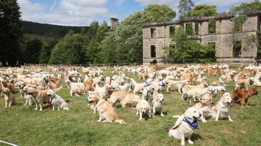 Μια επική συνάντηση είχαν εκατοντάδες γκόλντεν ριτρίβερ και οι κηδεμόνες τους στα Χάιλαντς της Σκωτίας για να τιμήσουν τον τόπο καταγωγής των σκυλιών τους.