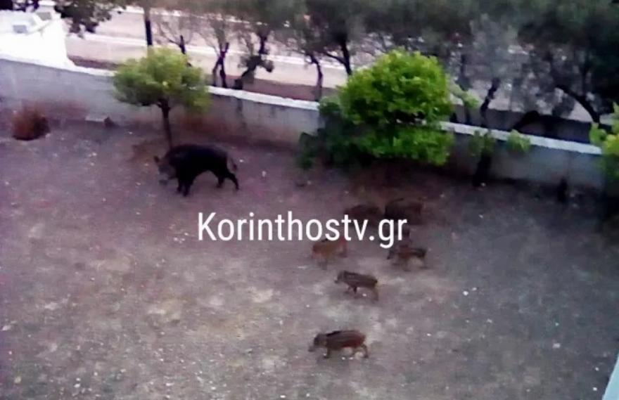 Δέκα αγριογούρουνα, εκ των οποίων τρία ήταν ενήλικα και επτά μικρά, εισέβαλαν στην αυλή ενός σπιτιού στο Λουτράκι, γεγονός ασυνήθιστο για την περιοχή. Παρόλο που συνήθως εμφανίζονται αλεπούδες κοντά στους κάδους απορριμμάτων, τα τελευταία χρόνια δεν είχαν κατέβει αγριογούρουνα.